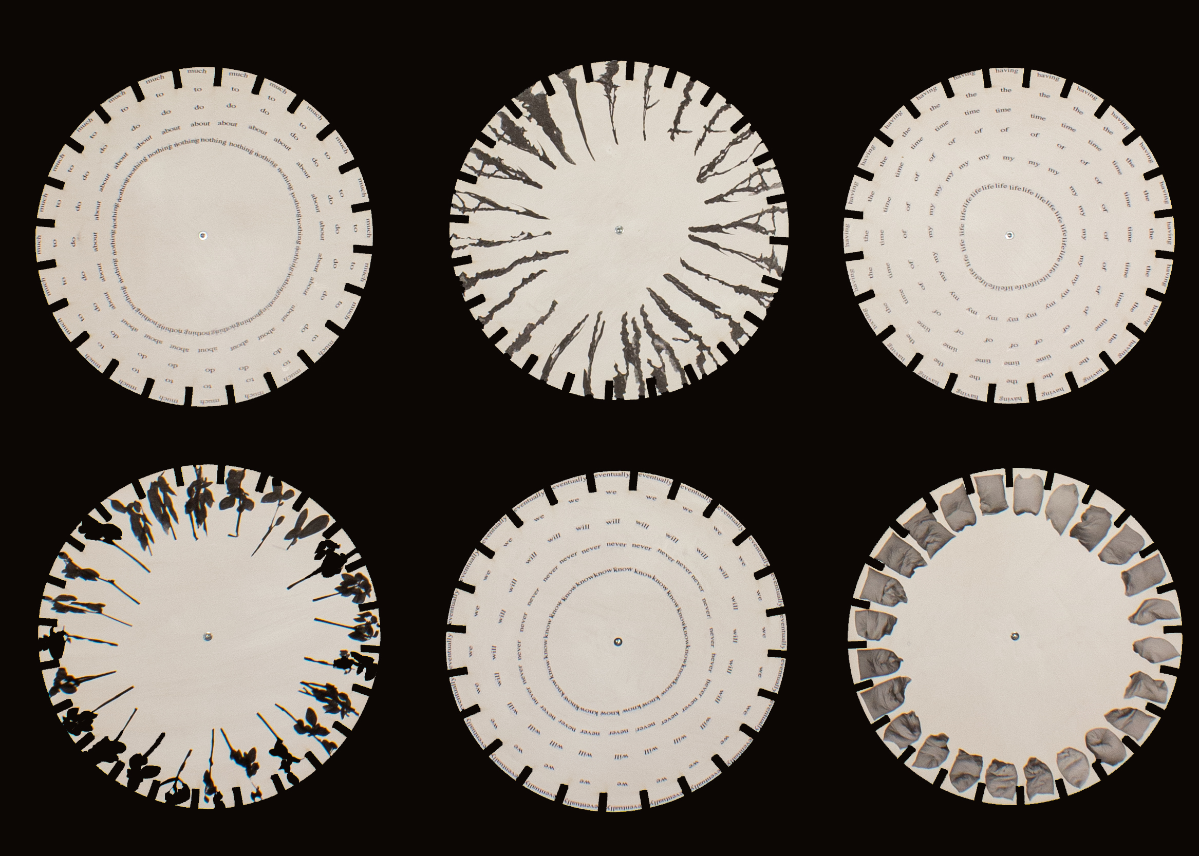 Motors, phenakistoscope, pillow, stream, basil plant, plywood, camera